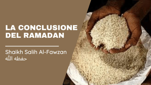 E queste due azioni concludono questo mese benedetto. E la quantità di sadaqah al-Fitr corrisponde a un Sa’ profetico che è un chilo e mezzo. Il Sa’ profetico è circa un chilo e mezzo. E se è di più è qualcosa di extra che fa aumentare il bene sul bene. Essa viene distribuita tra i bisognosi specialmente nel giorno di ‘Eid perché nel giorno di ‘Eid i negozi non sono aperti per vendere. Non c’è lavoro nel giorno di ‘Eid. Quindi la sadaqah al-Fitr è un aiuto per lui (il bisognoso) per far si che sia felice con le persone e mangi con loro durante questo giorno se la sadaqah al-Fitr gli viene distribuita. E questa è una conclusione eccelente del bene che si ottiene in questo mese benedetto.